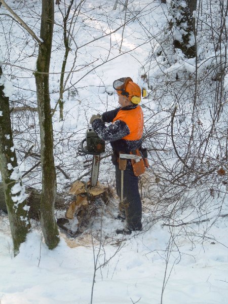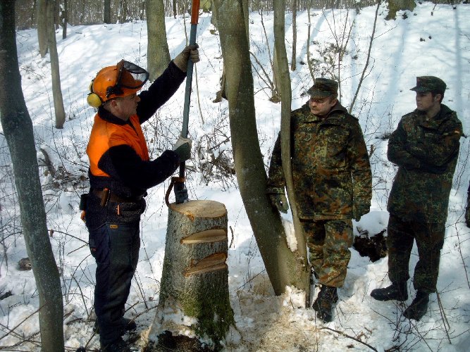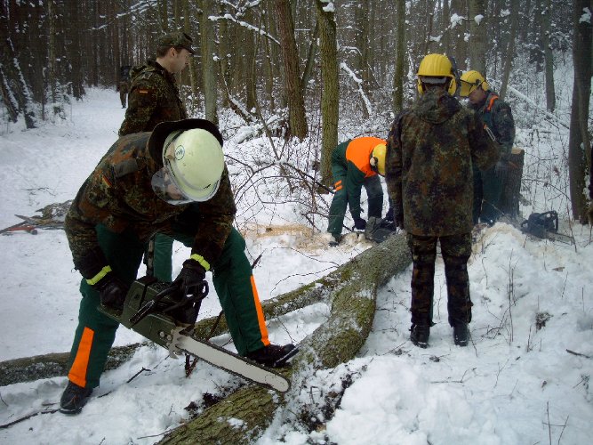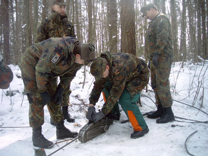 gehe ich mit dieser Motorkettensäge um? Eine Einweisung in den Umgang konnten sich die Reservisten in einem Privatwald in Wendelstein holen.