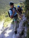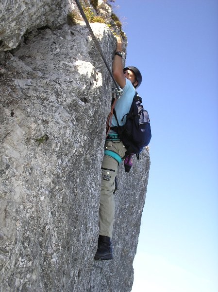 Der Steig war sehr gut abgesichert. Teilweise waren Passagen durch eine glatte senkrechte Wand mit vielen Eisenklammern als Tritte und einem