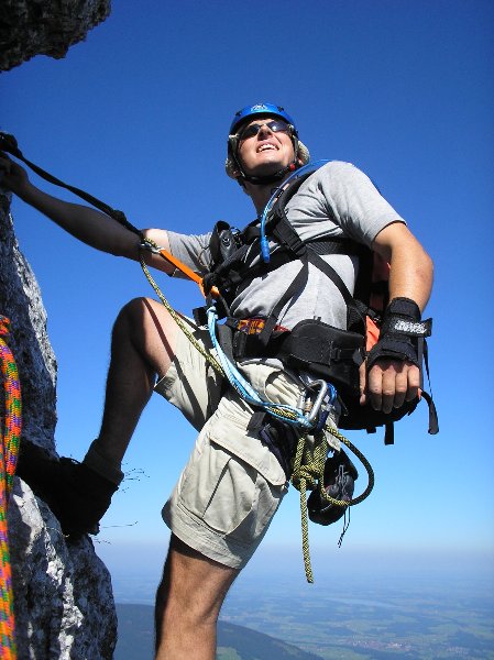 da der Route ohne die künstlichen Hilfsmittel teilweise doch in den 8./9. Schwierigkeitsgrad gehen würde.