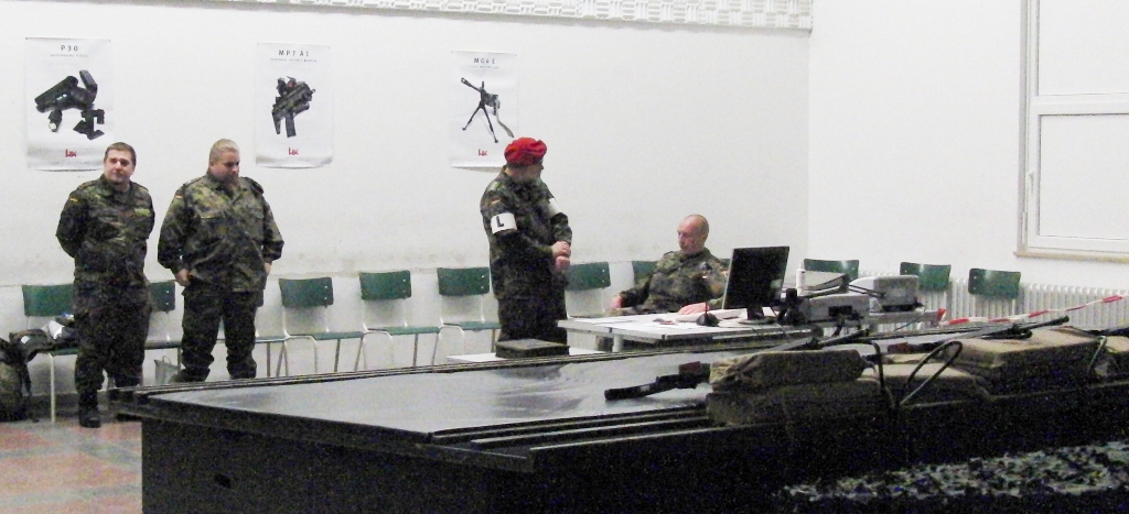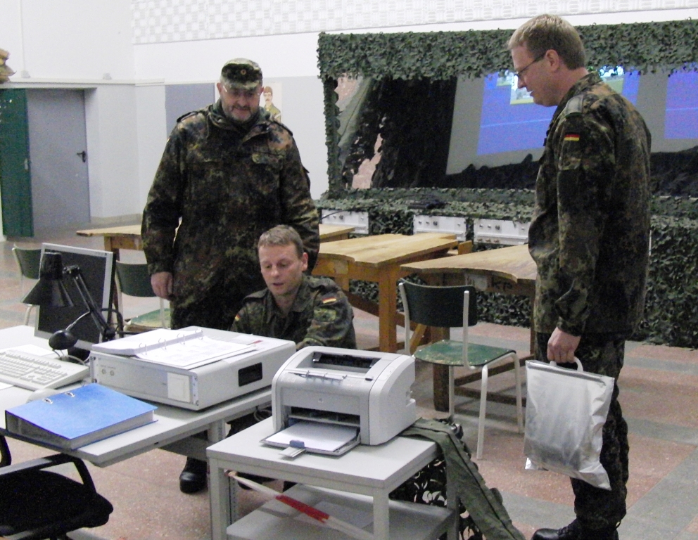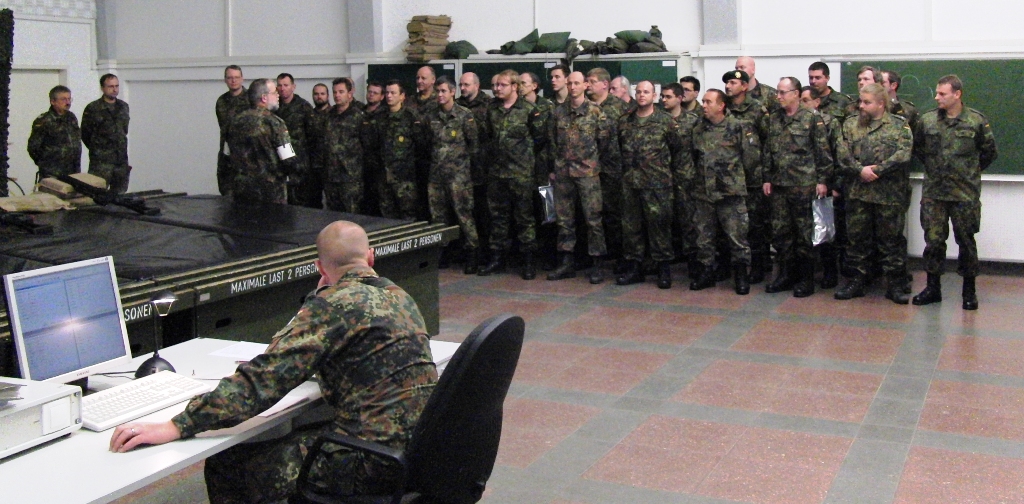 Am 29.10.2009 trafen sich 36 Reservisten des Bezirks Mittelfranken-Ost um unter Leitung der RK Nürnberg eine Ausbildung am Ausbildungs-Gerät Schießsimulator Handwaffen / Panzerabwehrhandwaffen (AGSHP) durchzuführen. Geplant war, die Schulschießübungen für das Gewehr G36 (G36-S-1a bis G36-S-3), die Panzerfaust Pzf3 (Pzf3-S-1 bis Pzf3-S-3), das Maschinengewehr MG3 (MG-S-1 bis MG-S-4) und die Pistole P8 (P-S-1 bis P-S-3) im Rahmen einer Stationsausbildung auf den beiden uns zur Verfügung stehenden Simulatoren zu absolvieren. Da jedoch einer der AGSHP-Simulatoren ausgefallen ist und auch nicht durch Fachpersonal des LwAusbReg zum Laufen gebracht werden konnte, wurde kurzfristig umdisponiert. An dem funktionierenden AGSHP konnten unter Leitung des Kameraden Kotowski die Schulschießübungen für das G36 absolviert werden, während am defekten Simulator Kamerad Gaschler den Reservisten eine Einweisung in die Funktion und Handhabung aller für das AGSHP zur Verfügung stehenden Waffen zukommen lies.