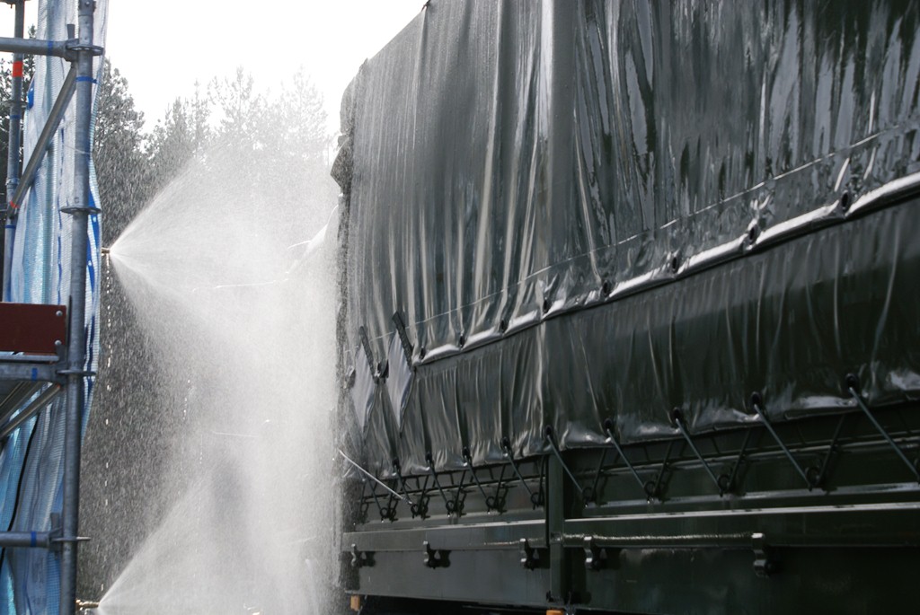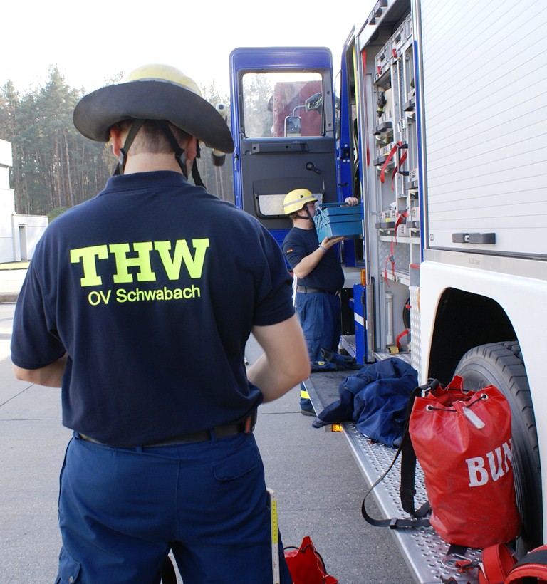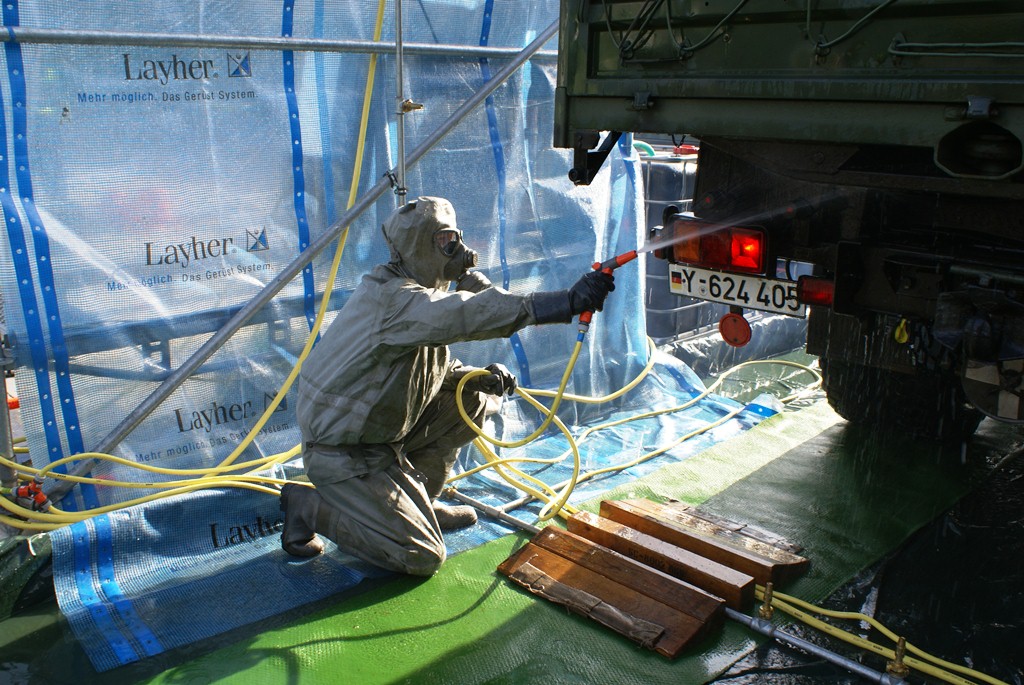Kommt es zu Kontaminationen von Fahrzeugen - wie zum Beispiel bei der Vogelgrippe - ist zuerst die Feuerwehr oder das THW gefragt. In der Region Nürnberg besitzt das THW Schwabach eine Einrichtung zur Dekontamination von Fahrzeugen. Das THW ist dabei nur für den Aufbau verantwortlich, den Betrieb müssen andere übernehmen.