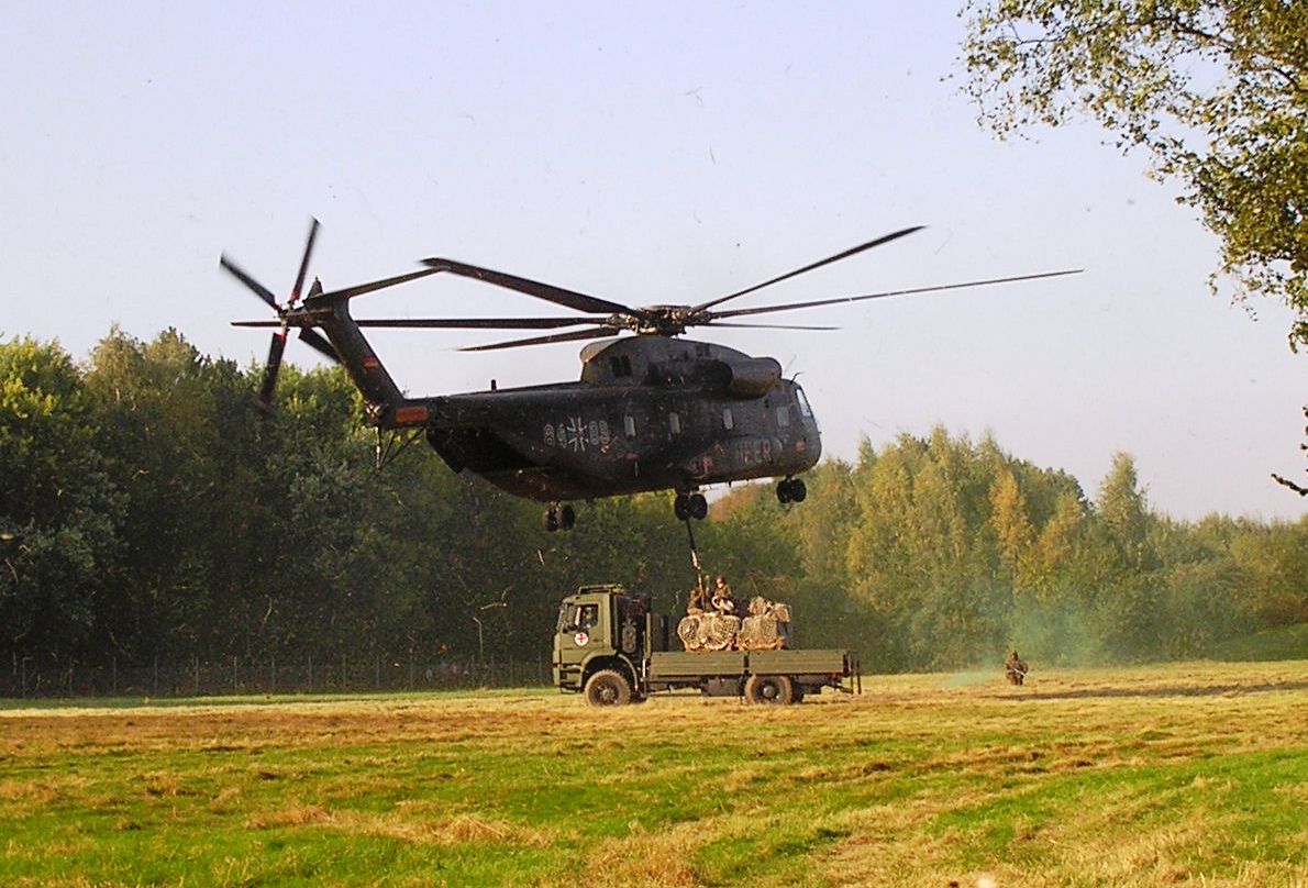 Der Ablauf war eindrucksvoll. Nach dem Absetzen der auf Paletten verlasteten Luftlanderettungsstation ging alles ganz schnell. In etwas über 10 Minuten war die die Rettungsstation aufgebaut und einsatzbereit. Eine Behandlung ähnlich wie in einem Notarztwagen wäre möglich. Bei Bedarf kann aber auch noch ein gepanzerter Sanitäts-Wolf nachgeführt werden. Das "Arbeitstier" mit dem dies alles ermöglicht wird, ist der Transporthubschrauber CH 53.