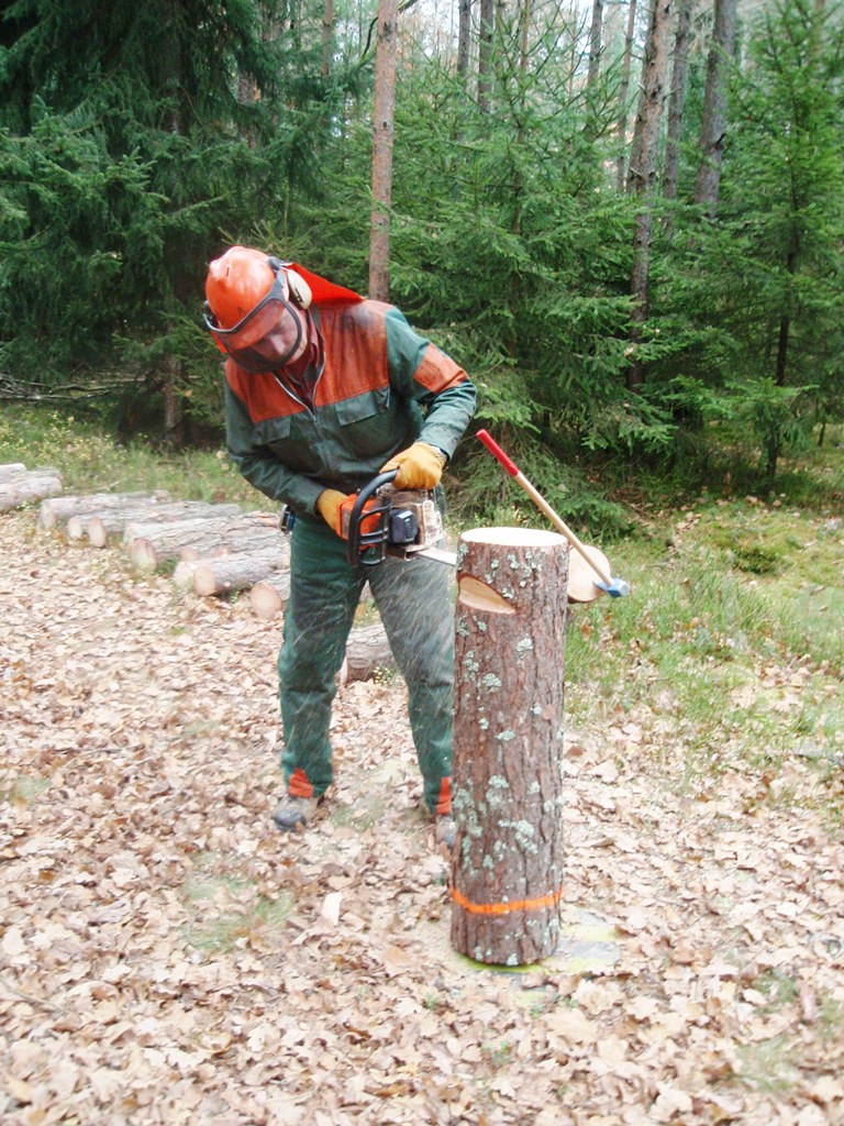 Freitag galt der Unterweisung, den Sicherheitsvorschriften, den Säge- und Fälltechniken in der Theorie, der Wartung und dem Betanken der Motorkettensäge sowie dem Schärfen der Ketten. Am Samstag konnten dann praktische Übungen am Holz durchgeführt werden. Neben Schneideübungen und vorbereitenden Übungen zum Fällkerb konnte dann jeder "seinen" Baum fällen und aufarbeiten.