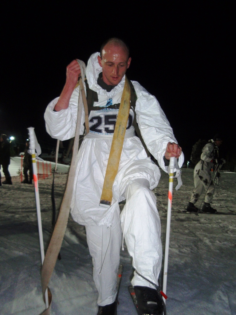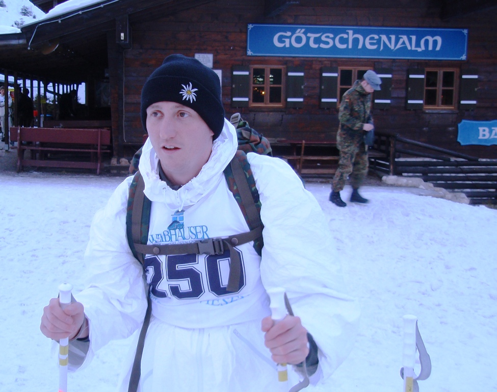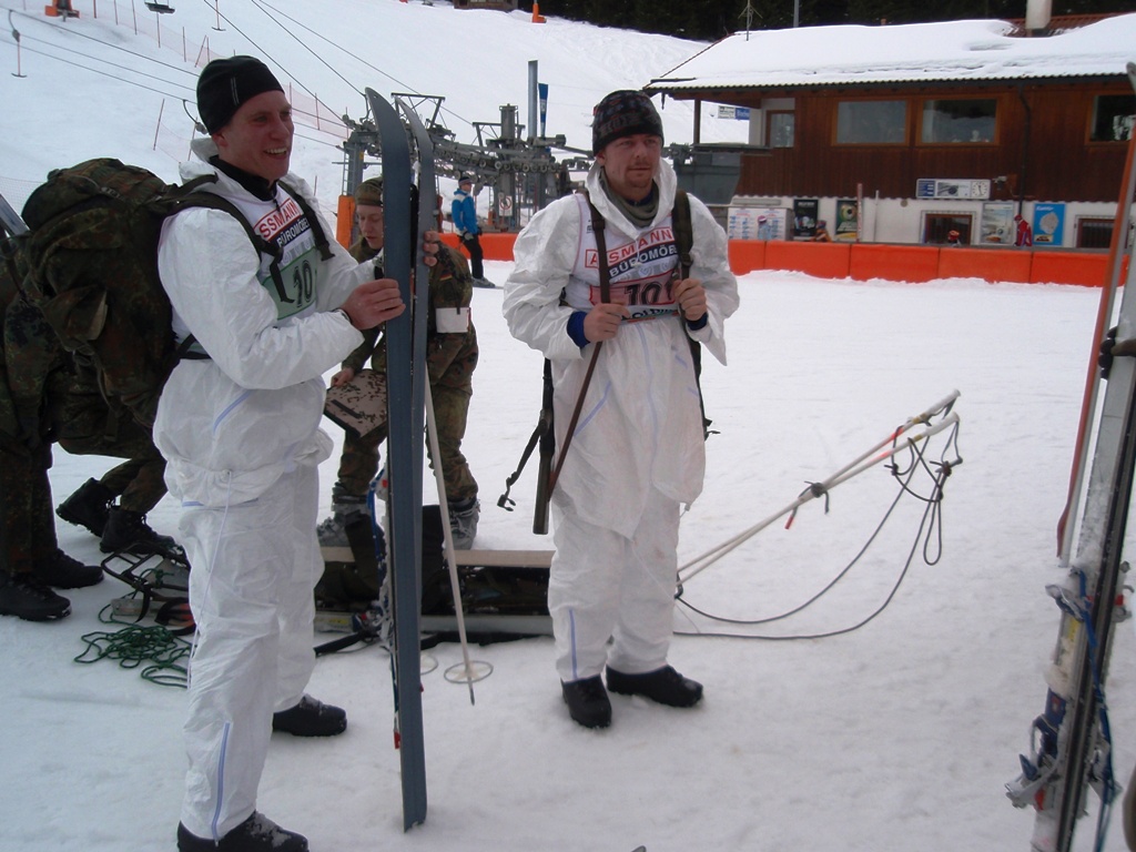 Als weitere militärische Disziplin stand der Skitourenwettkampf auf dem Programm. Hier gingen die Kameraden Jan Faber, Roland Kronschnabel und Markus Wunderlich an den Start. Die Aufgabe bestand in einer möglichst schnellen Überwindung des Aufstiegs, der Abfahrt und des teilweise Wiederaufstieg am Götschen. Nach etwas mehr als 30 Minuten waren die nahezu 700 Höhenmeter im Aufstieg überwunden. In der Reservistenklasse konnte Jan Faber den 3. Platz in seiner Altersklasse belegen.