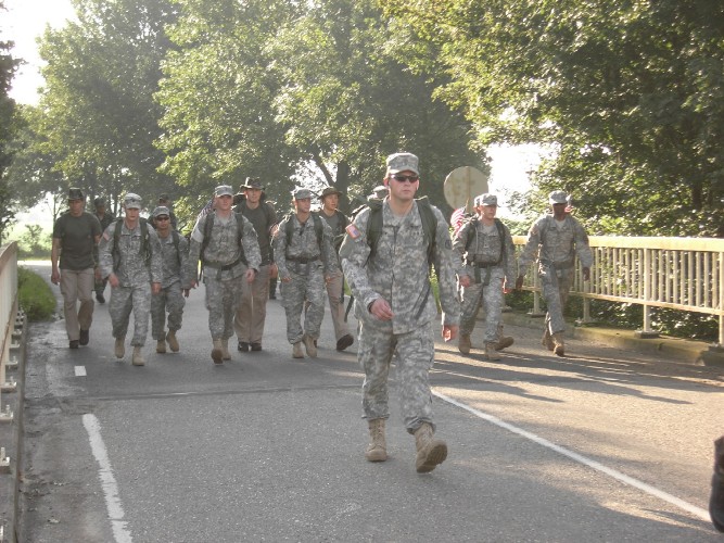 Vier mal 40 km mit mindestens 10 kg Gepäck, immer über Straßen, das muss man schon gewohnt sein. Das gemeinsame Training hat sich aber ausbezahlt. Die Marschgruppe kam ohne Ausfälle geschlossen auch nach vier Tagen wieder ins Ziel.