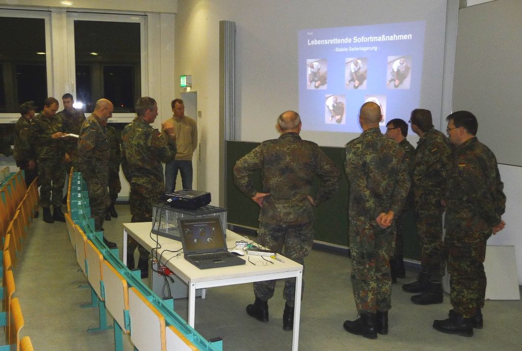 An drei Tagen Ende November 2008 erfolgte die Ausbildung zum Helfer im San-Dienst in Roth. Gleichzeitig wurde auch ein Refresher-Lehrgang angeboten, für Reservisten, die die Ausbildung bereits haben, aber 2-3 Jahre zurückliegt.