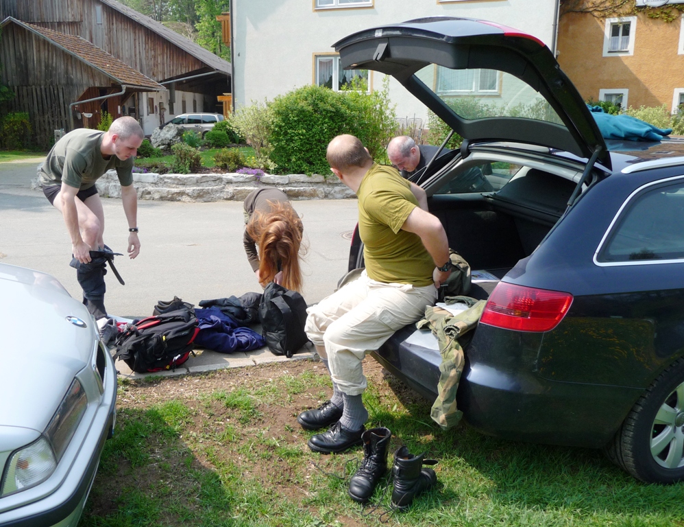 Den Tag der Arbeit einmal anderes begangen haben wir Reservisten der RK Nürnberg. Eine andere Art der "Hindernisbahn" hatte es uns angetan. Gesamtlänge Hin- und Rückweg gerade einmal etwas mehr als 1 km, dafür aber einen Zeitbedarf von fast 3 Stunden. Es ging um einen Parcours unter Tage: Die Befahrung der Höhle ohne Namen in Steinamwasser.