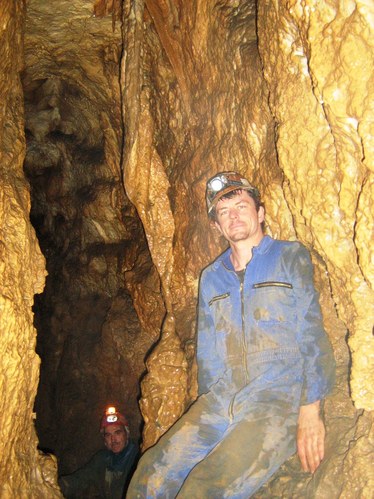 Nach den Vorbereitungen, das hieß Umziehen in Klamotten, die dreckig und nass werden dürfen und möglichst verschleißfest sind, stiegen wir in die Höhle ein. Der Eingang ist noch ganz angenehm, wird er doch zeitweise als Bierkeller der zugehörigen Gastwirtschaft benutzt. Nach der Eingangshalle verzweigt sich dann die Höhle in drei große Teile. Wir starteten mit der Julius-Rühm-Klamm, für die Zeit noch mit ungewöhnlich viel Wasser.