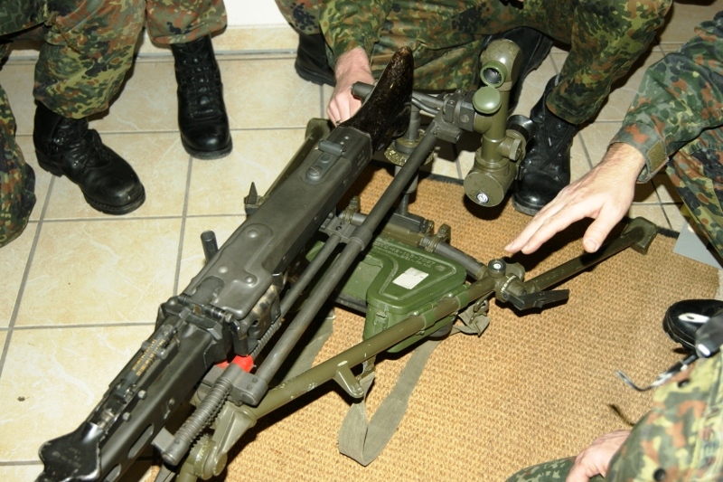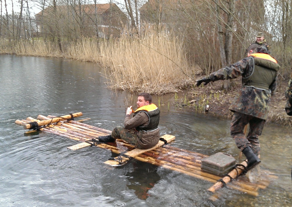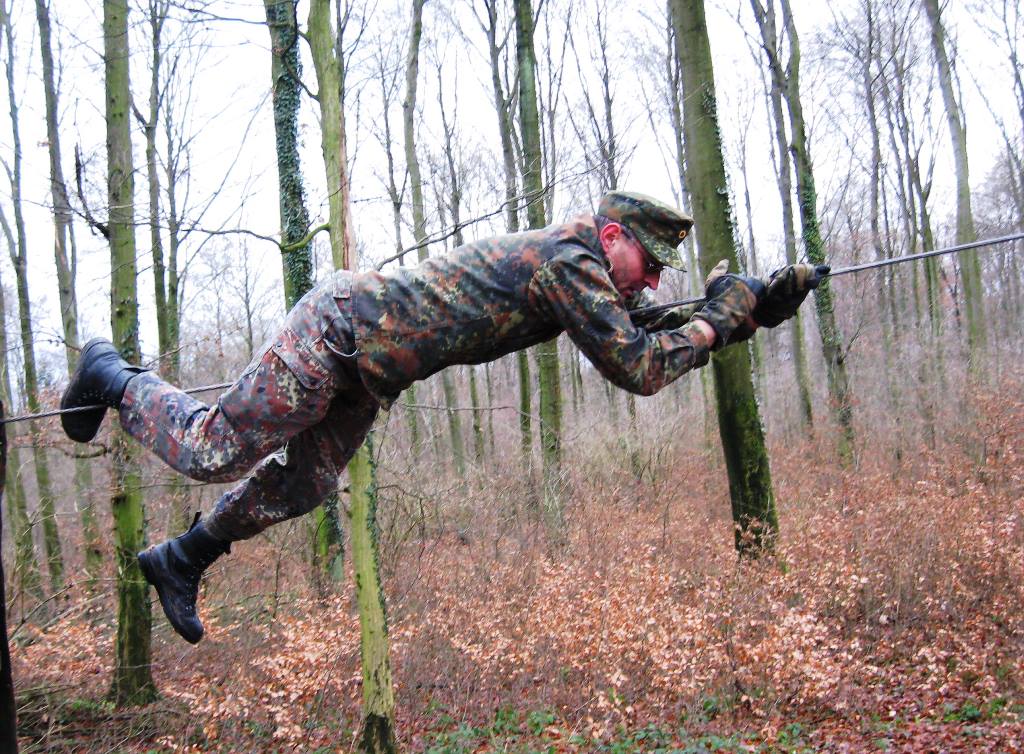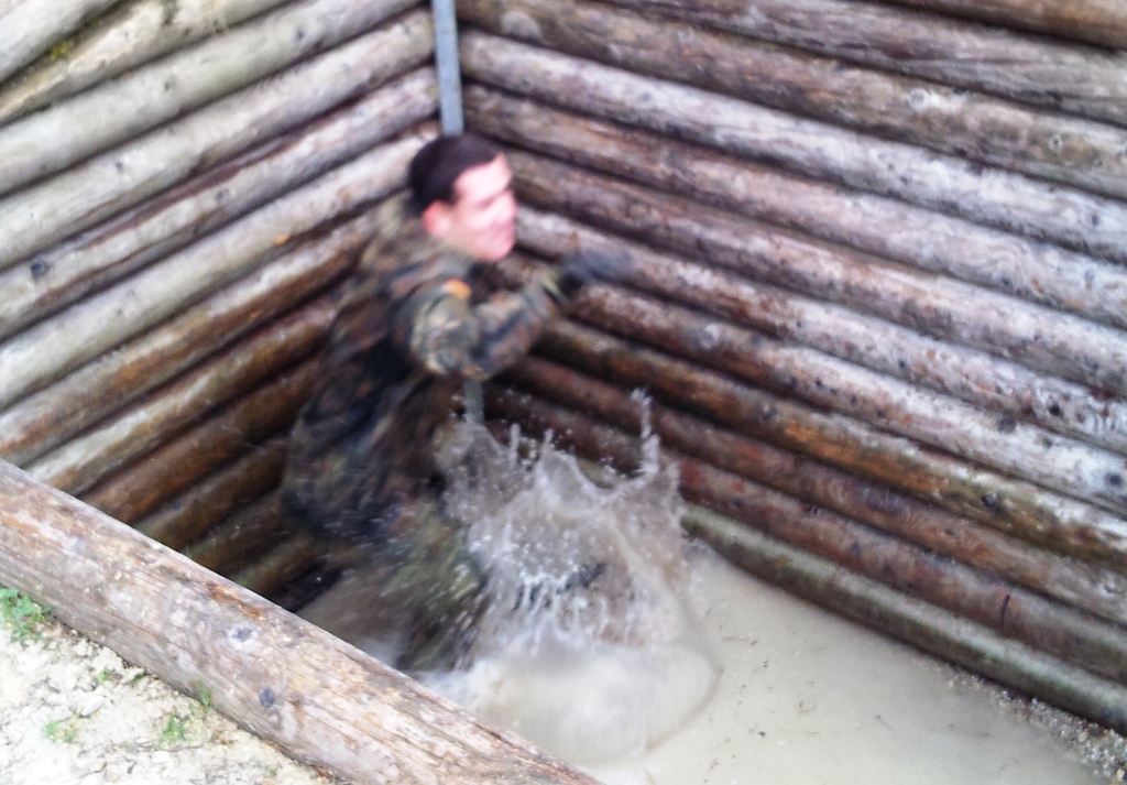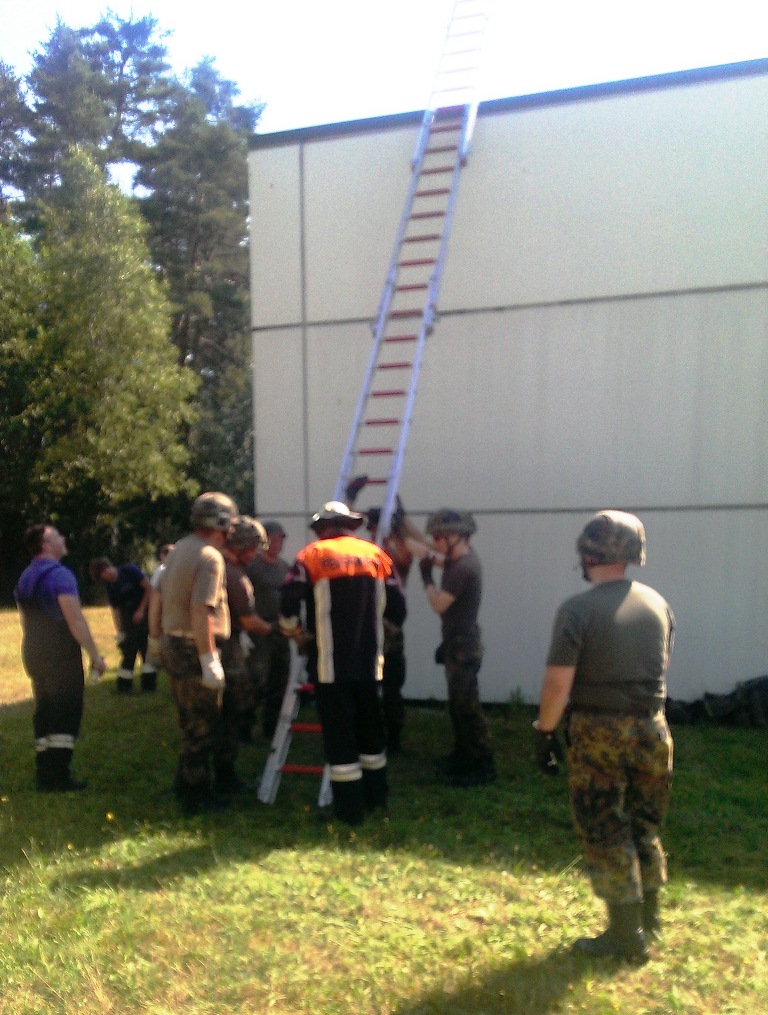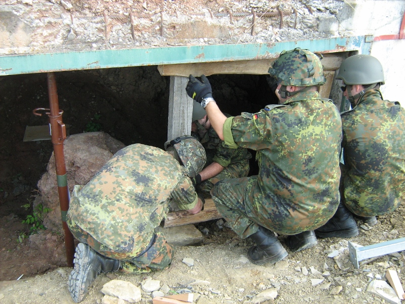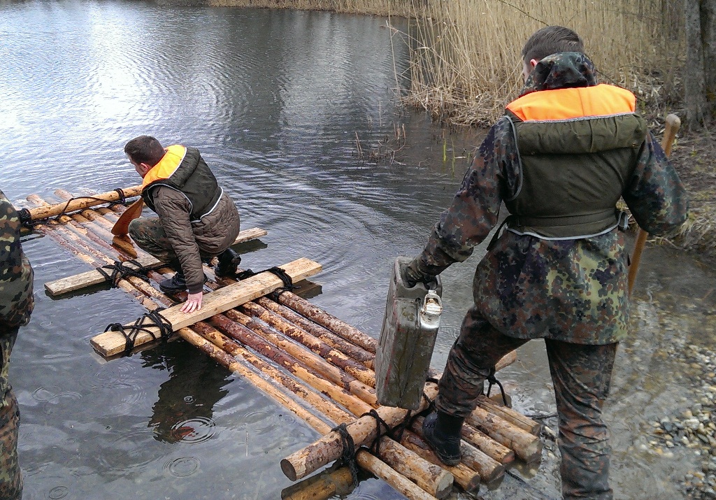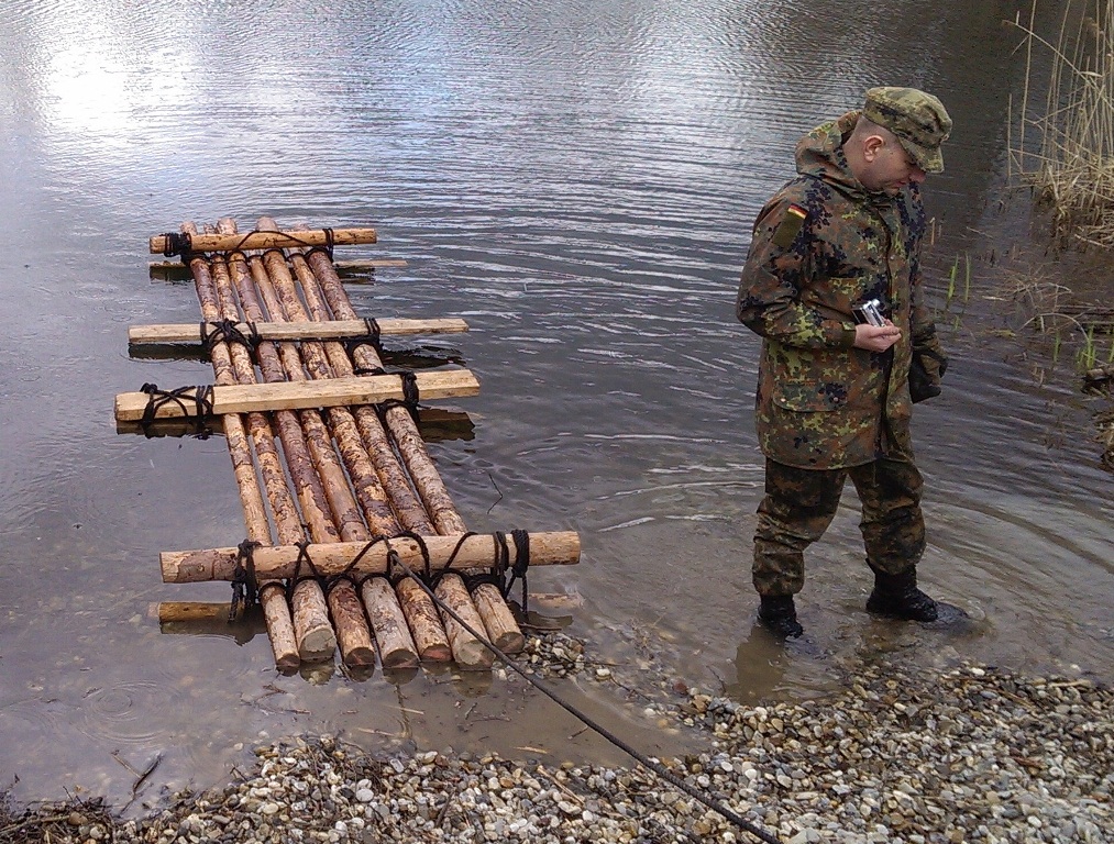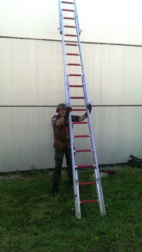 Der Wettkampf startete mit einer Tagphase, in welcher die Soldaten auf die Lage für die bevorstehende Nachtübung vorbereitet werden sollten. 20 Stationen waren im 15-minütigen Takt zu durchlaufen, oftmals viel zu wenig Zeit um alle Aufgabenstellungen an einer Station zu bewältigen. Für uns ging es los mit "Beobachten aus einer Scharfschützenstellung heraus sowie Geländespinne erstellen". Dann folgten verschiedene Schießaufgaben und der doppelte Seilsteg. Am einfachen Seilsteg musste das Wiederaufsteigen nach einem simulierten Absturz gezeigt werden, gar nicht so leicht, aber immerhin zwei aus der Mannschaft haben das geschafft. Bei der improvisierten Hindernisbahn folgte dann der Handgranatenzielwurf. Weiter ging's mit Erkennen von Uniformen und Flaggen, Checkpoints, AGSHP und Feuerlöschen. Letzte Aufgabe war dann die Inbetriebnahme eines Funkgeräts und Absetzen eines verschleierten Funkspruchs.