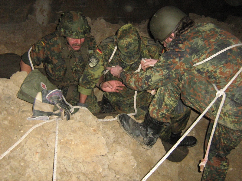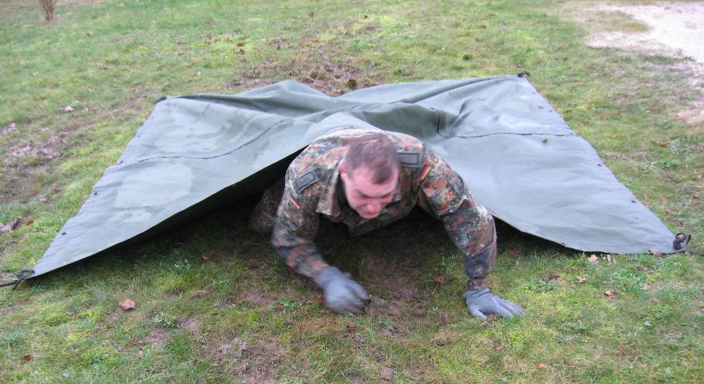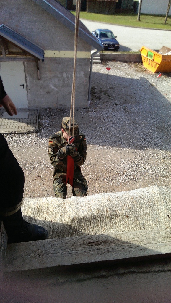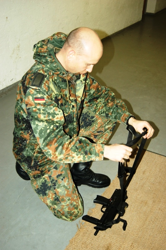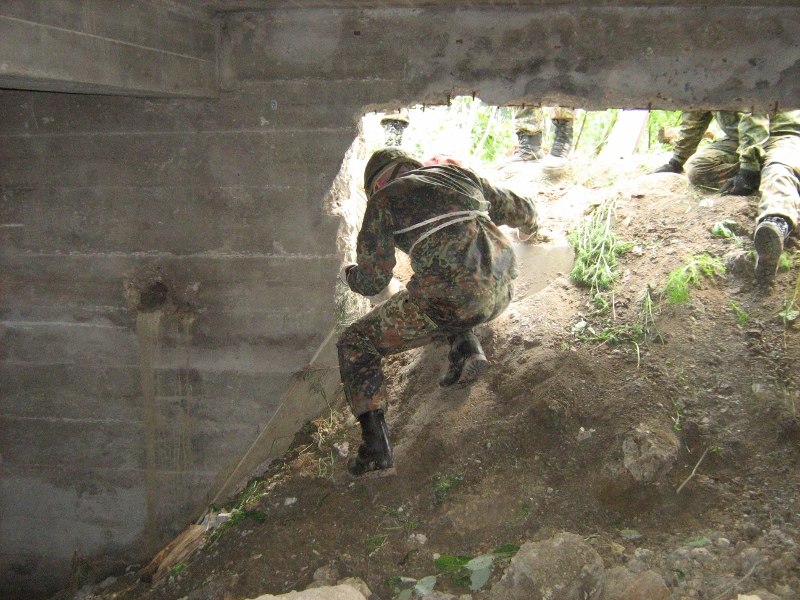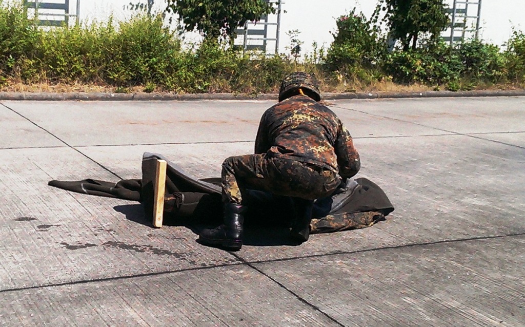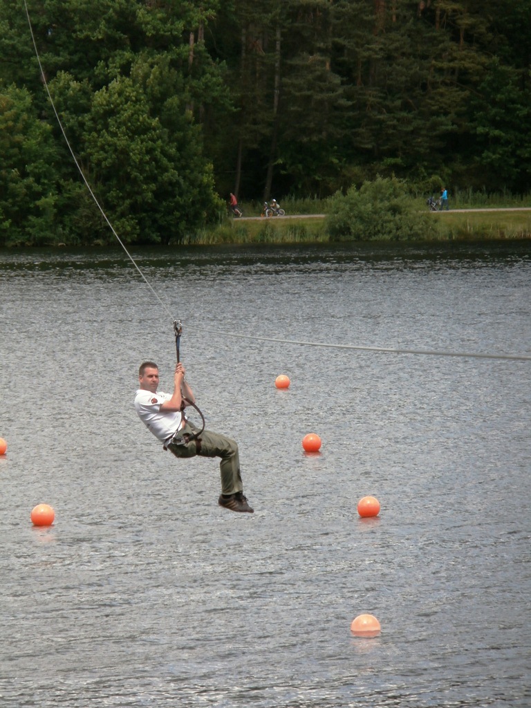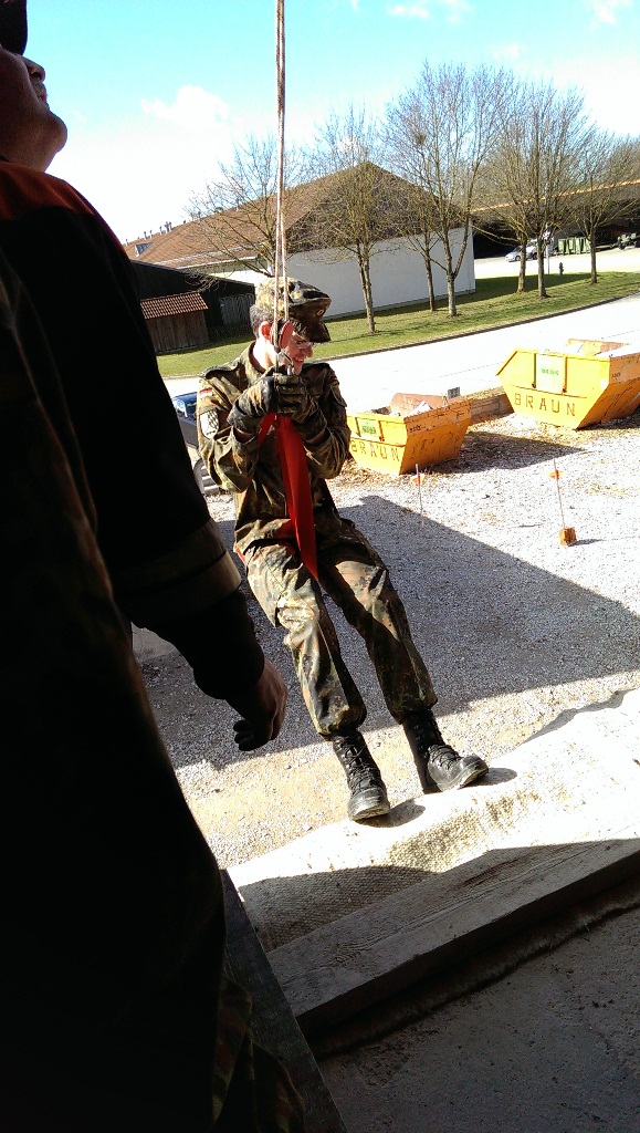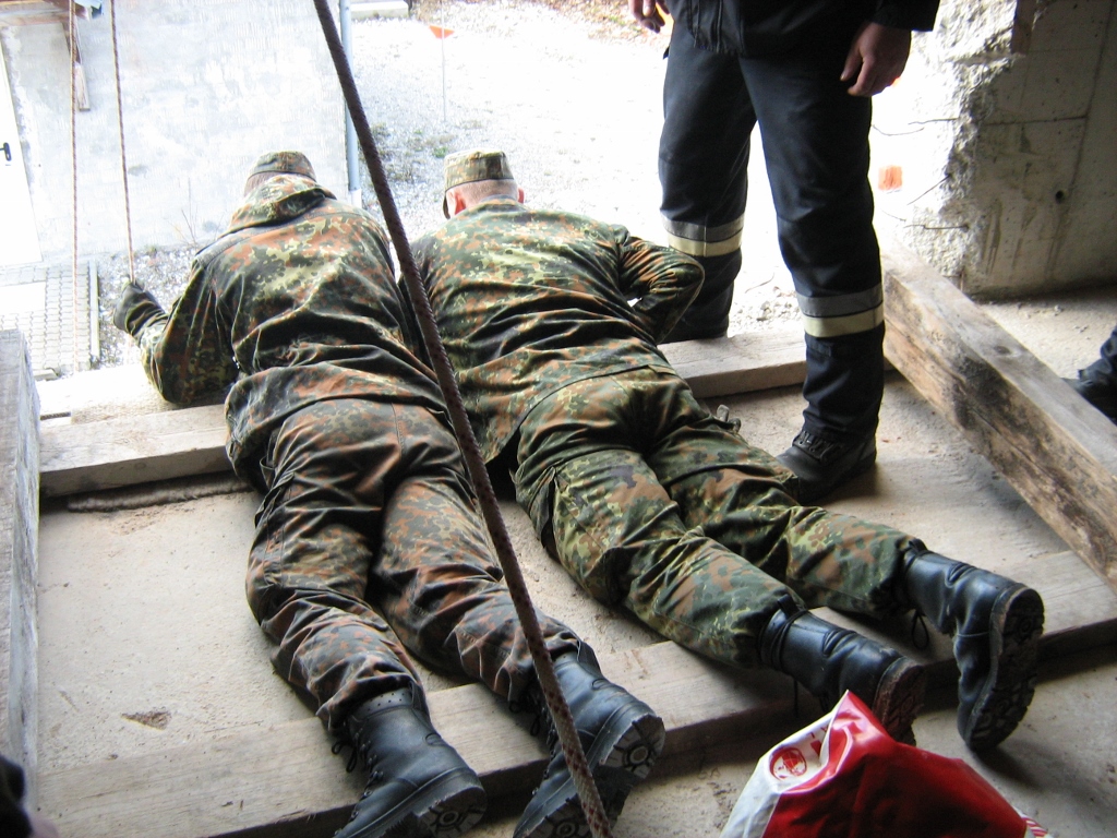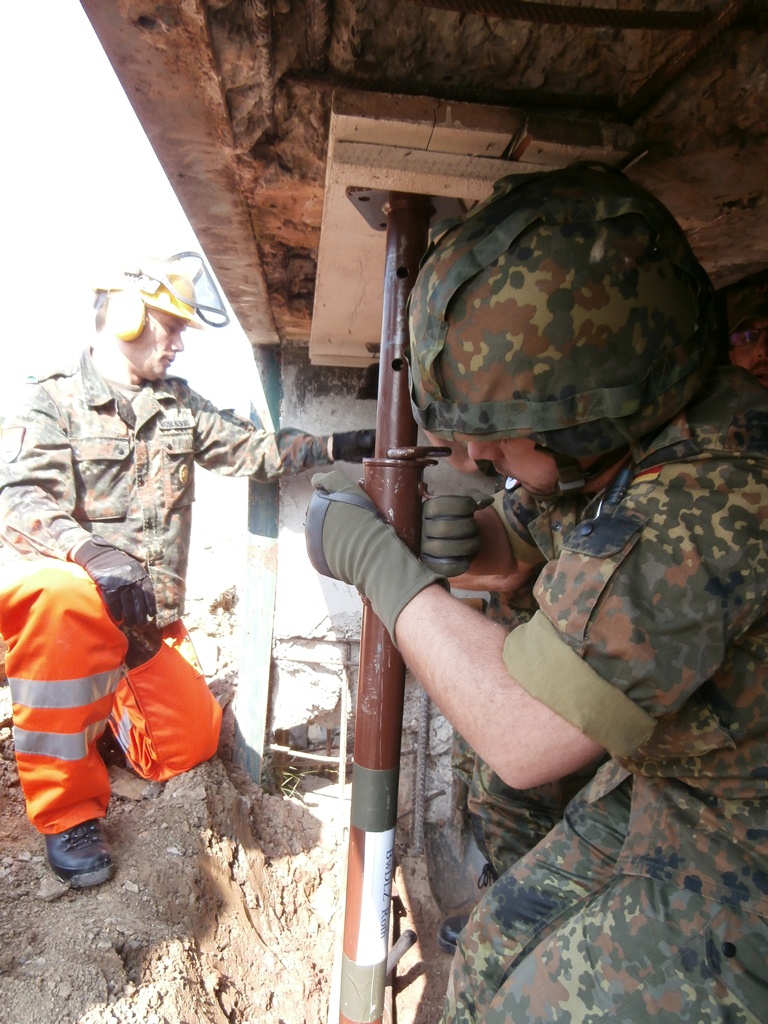 Der Wettkampf startete mit einer Tagphase, in welcher die Soldaten auf die Lage für die bevorstehende Nachtübung vorbereitet werden sollten. 20 Stationen waren im 15-minütigen Takt zu durchlaufen, oftmals viel zu wenig Zeit um alle Aufgabenstellungen an einer Station zu bewältigen. Für uns ging es los mit "Beobachten aus einer Scharfschützenstellung heraus sowie Geländespinne erstellen". Dann folgten verschiedene Schießaufgaben und der doppelte Seilsteg. Am einfachen Seilsteg musste das Wiederaufsteigen nach einem simulierten Absturz gezeigt werden, gar nicht so leicht, aber immerhin zwei aus der Mannschaft haben das geschafft. Bei der improvisierten Hindernisbahn folgte dann der Handgranatenzielwurf. Weiter ging's mit Erkennen von Uniformen und Flaggen, Checkpoints, AGSHP und Feuerlöschen. Letzte Aufgabe war dann die Inbetriebnahme eines Funkgeräts und Absetzen eines verschleierten Funkspruchs.
