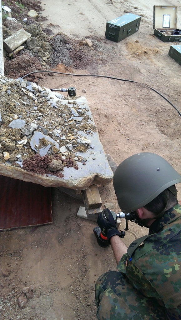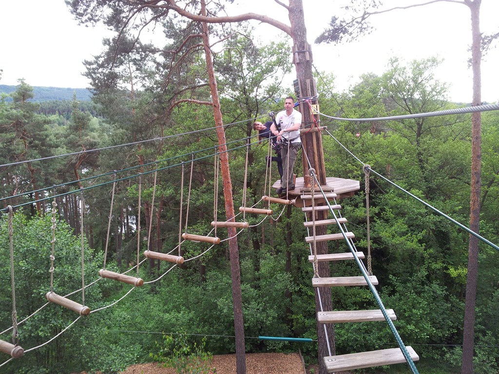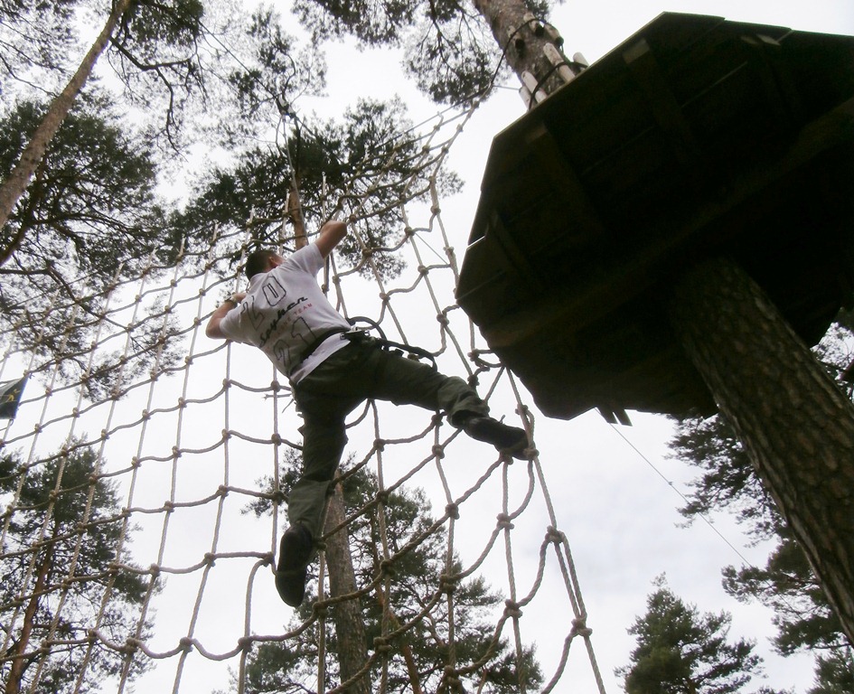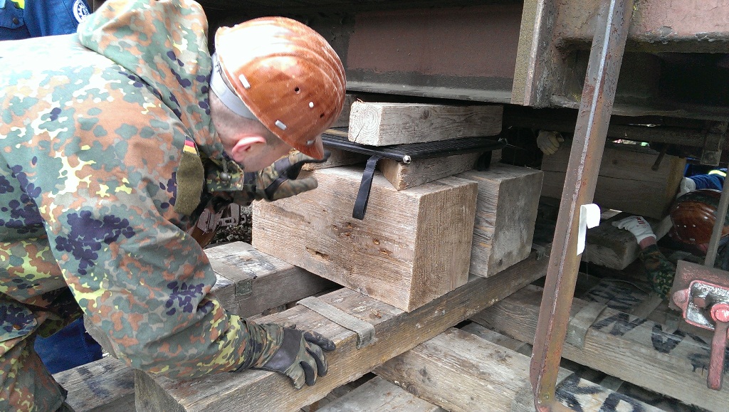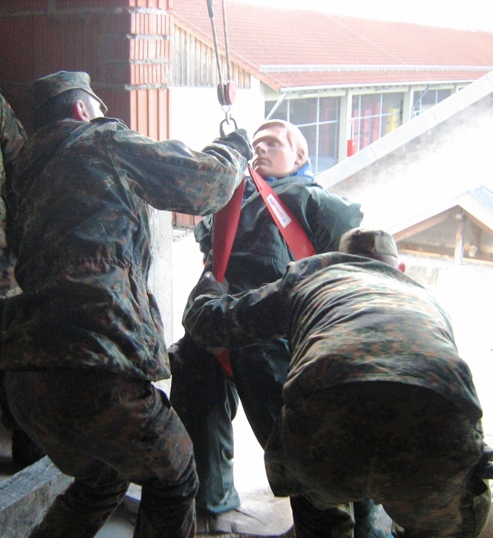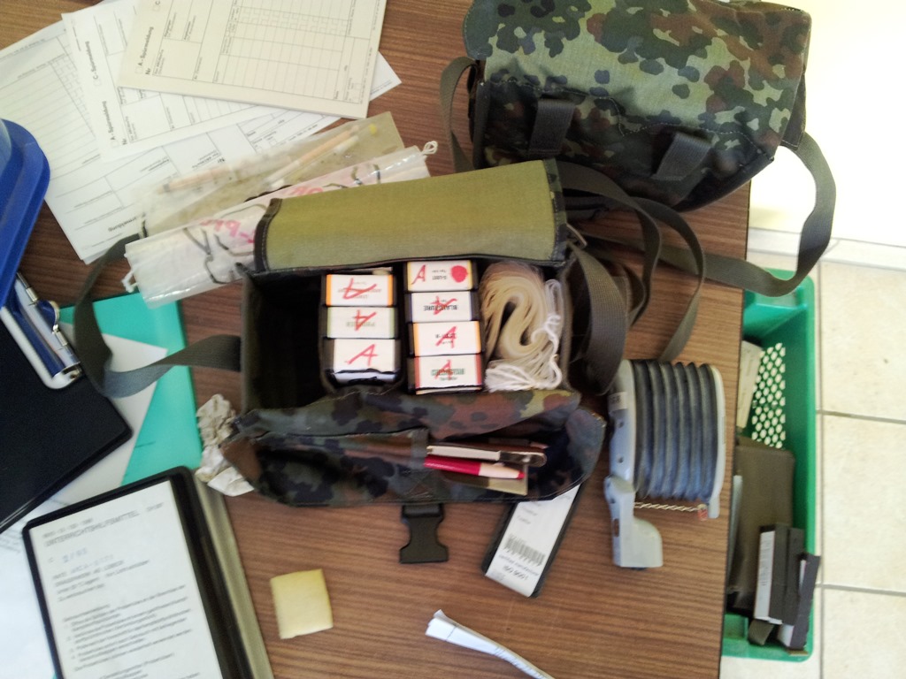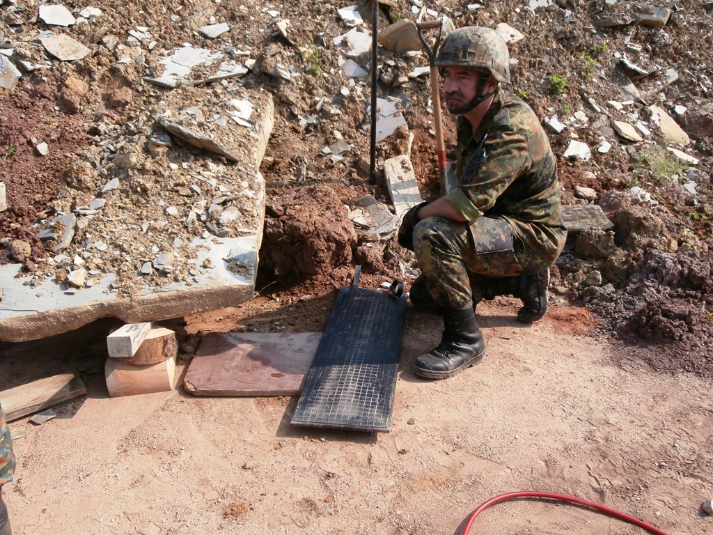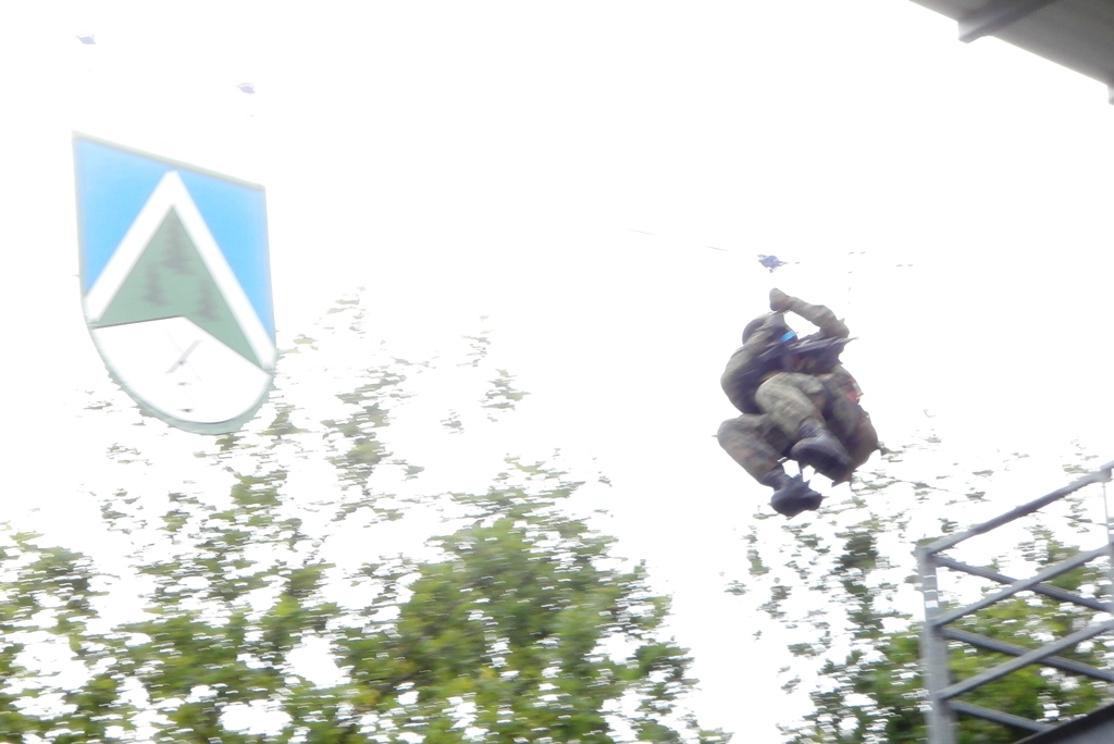 Der Wettkampf startete mit einer Tagphase, in welcher die Soldaten auf die Lage für die bevorstehende Nachtübung vorbereitet werden sollten. 20 Stationen waren im 15-minütigen Takt zu durchlaufen, oftmals viel zu wenig Zeit um alle Aufgabenstellungen an einer Station zu bewältigen. Für uns ging es los mit "Beobachten aus einer Scharfschützenstellung heraus sowie Geländespinne erstellen". Dann folgten verschiedene Schießaufgaben und der doppelte Seilsteg. Am einfachen Seilsteg musste das Wiederaufsteigen nach einem simulierten Absturz gezeigt werden, gar nicht so leicht, aber immerhin zwei aus der Mannschaft haben das geschafft. Bei der improvisierten Hindernisbahn folgte dann der Handgranatenzielwurf. Weiter ging's mit Erkennen von Uniformen und Flaggen, Checkpoints, AGSHP und Feuerlöschen. Letzte Aufgabe war dann die Inbetriebnahme eines Funkgeräts und Absetzen eines verschleierten Funkspruchs.