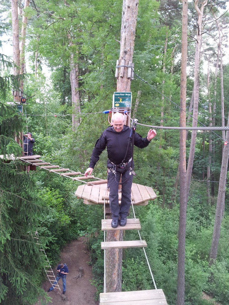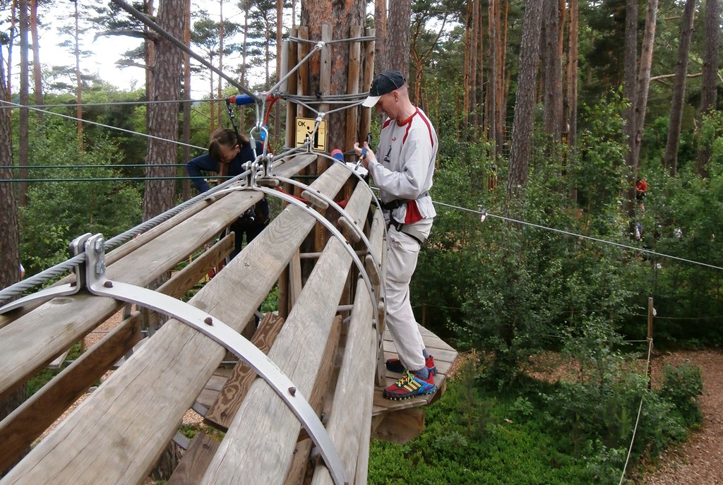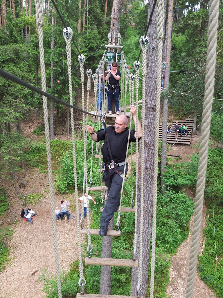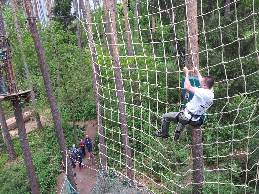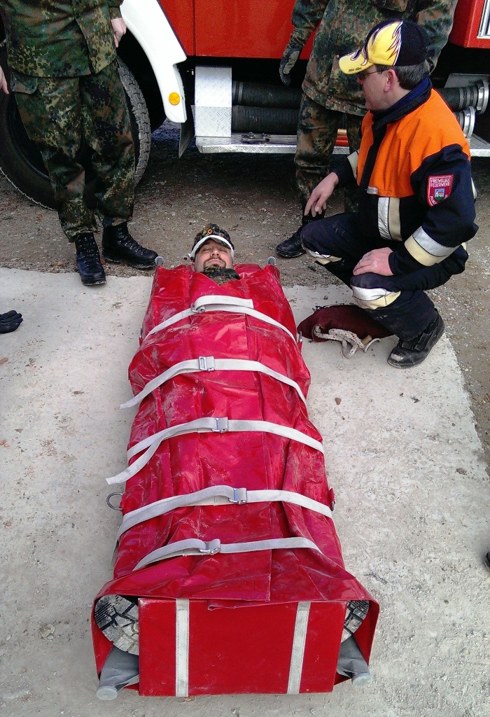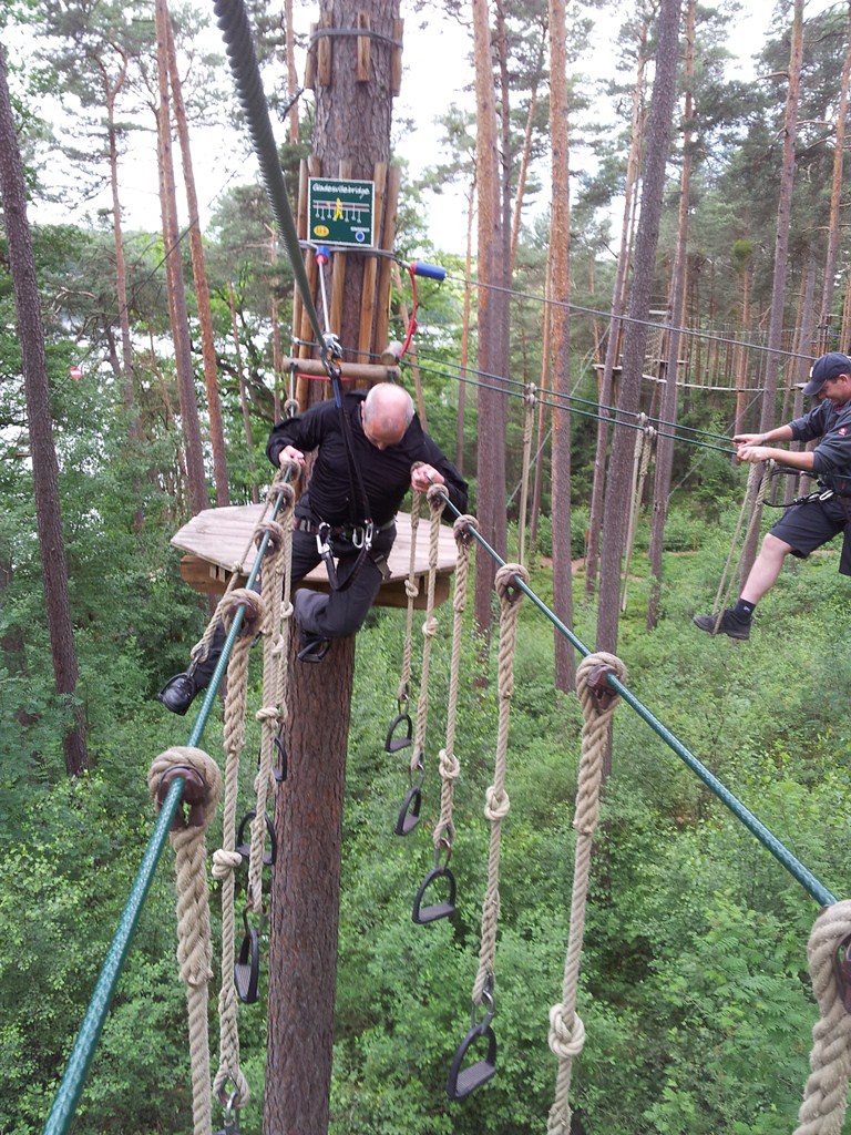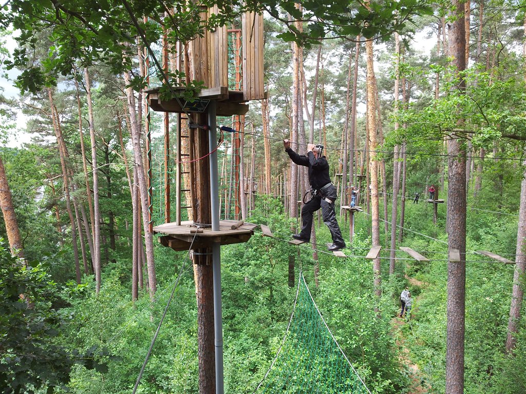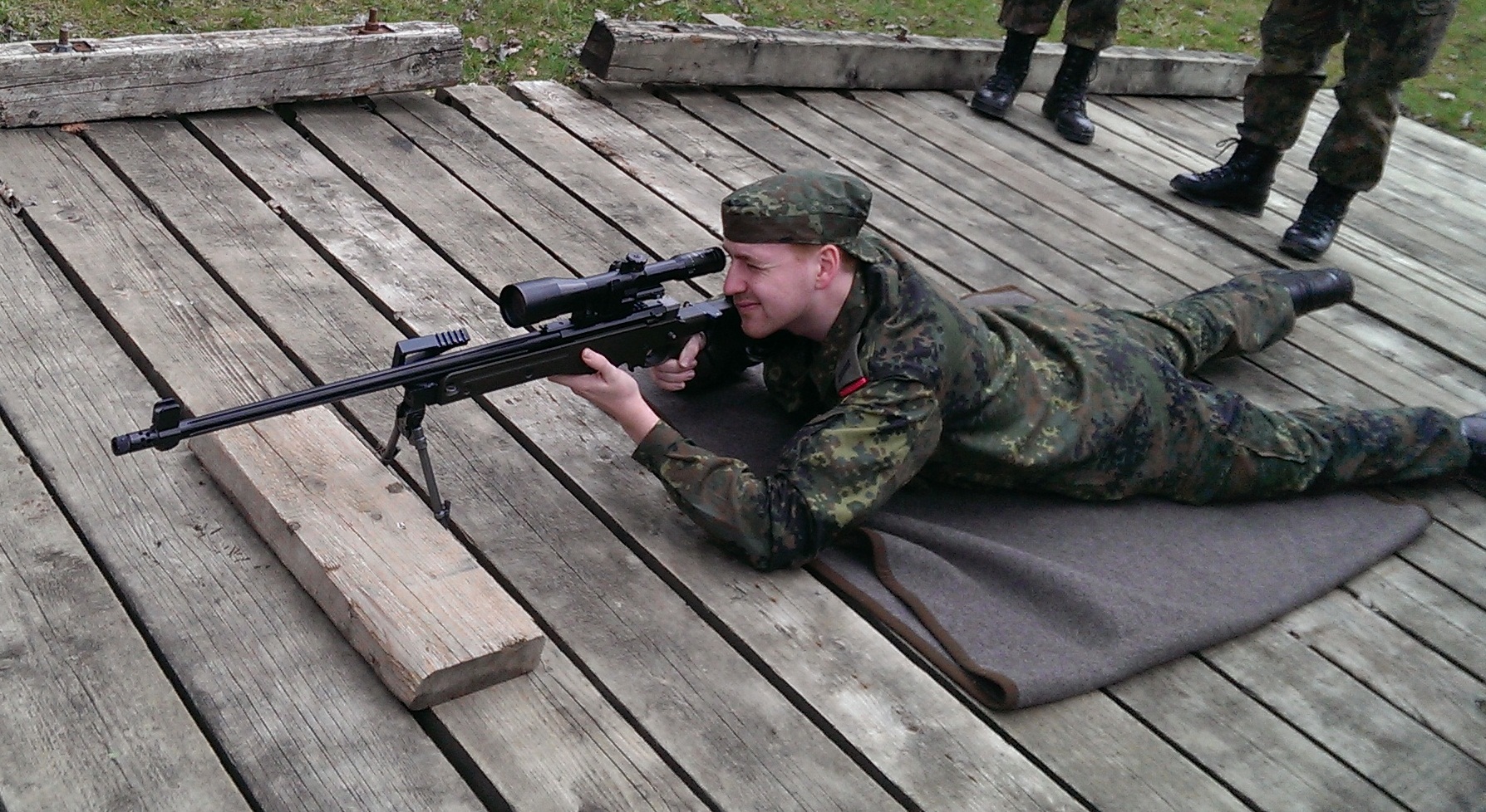 Der Wettkampf startete mit einer Tagphase, in welcher die Soldaten auf die Lage für die bevorstehende Nachtübung vorbereitet werden sollten. 20 Stationen waren im 15-minütigen Takt zu durchlaufen, oftmals viel zu wenig Zeit um alle Aufgabenstellungen an einer Station zu bewältigen. Für uns ging es los mit "Beobachten aus einer Scharfschützenstellung heraus sowie Geländespinne erstellen". Dann folgten verschiedene Schießaufgaben und der doppelte Seilsteg. Am einfachen Seilsteg musste das Wiederaufsteigen nach einem simulierten Absturz gezeigt werden, gar nicht so leicht, aber immerhin zwei aus der Mannschaft haben das geschafft. Bei der improvisierten Hindernisbahn folgte dann der Handgranatenzielwurf. Weiter ging's mit Erkennen von Uniformen und Flaggen, Checkpoints, AGSHP und Feuerlöschen. Letzte Aufgabe war dann die Inbetriebnahme eines Funkgeräts und Absetzen eines verschleierten Funkspruchs.