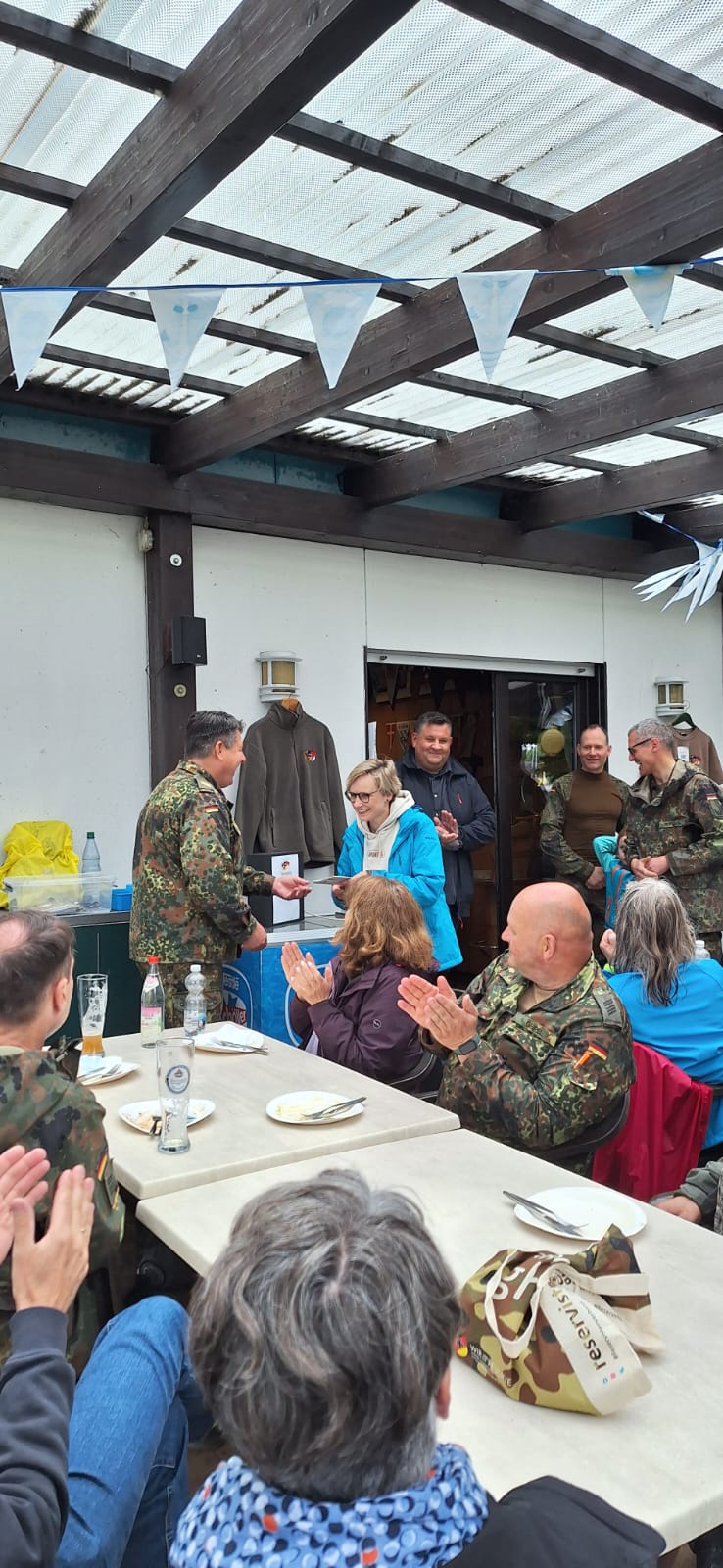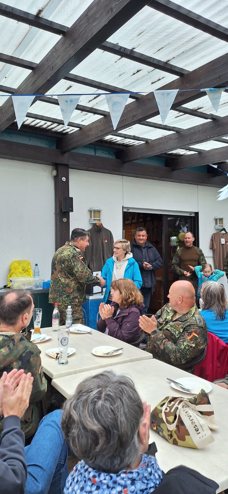 Ein besonderer Dank gilt Hptm d.R. Kleinschroth, OTL d.R. Prof. Dr. Lender, OSF Dietmar Eitel, SF Wild sowie der Kreisgruppe Mittelfranken-Ost für Organisation, Engagement und beispielhafte Durchführung. Ebenso dem Kreisfeuerwehrverband Roth und Andreas Holzheimer, stellv. Leiter UG Atemschutz / ABC. Ein herzliches Dankeschön für die interessante Führung und die Möglichkeit, den „Käfig“ hautnah zu erleben.