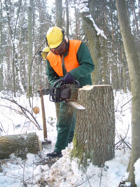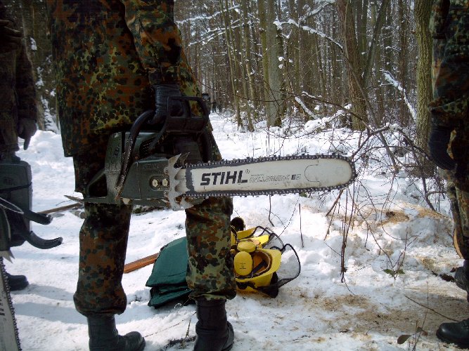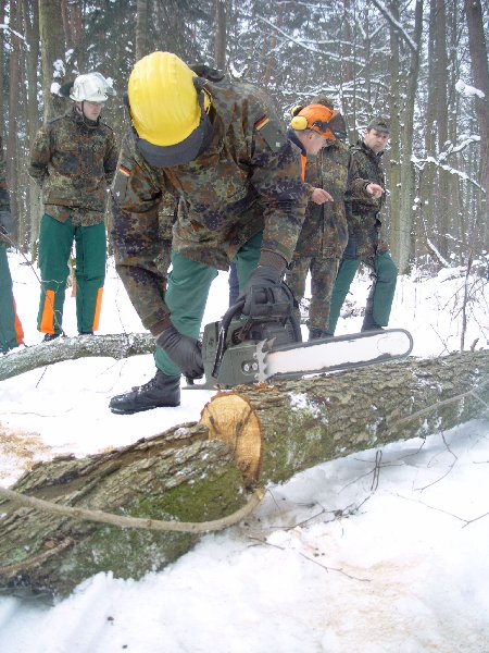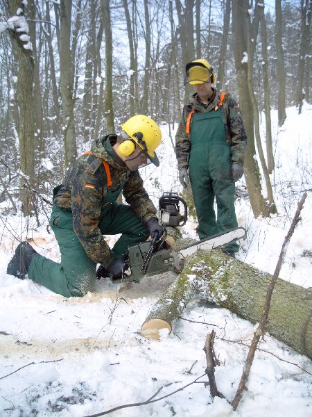 gehe ich mit dieser Motorkettensäge um? Eine Einweisung in den Umgang konnten sich die Reservisten in einem Privatwald in Wendelstein holen.