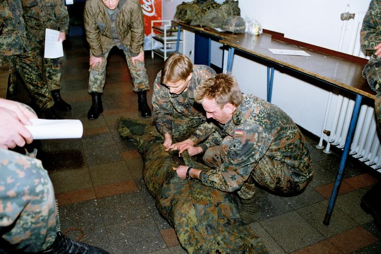Mit dem Zeltbahnpaket! Bevor dies in den Sommermonaten praktisch geübt werden kann, musste ein Trockentraining her. Alles auf die