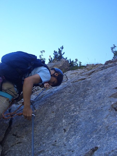 da der Route ohne die künstlichen Hilfsmittel teilweise doch in den 8./9. Schwierigkeitsgrad gehen würde.