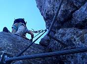 Der Steig war sehr gut abgesichert. Teilweise waren Passagen durch eine glatte senkrechte Wand mit vielen Eisenklammern als Tritte und einem